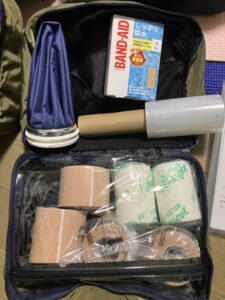怪我をしてしまった際などに必要となる医療品セットがコンパクトにまとめられているものになります。