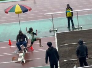 松原左岸ACでは、跳躍の練習は、月に数回の競技場練習のみですので、その少ない競技場練習の中で専門コーチから吸収できるものをしっかりと吸収し、後は、小学校の砂場や家の布団などを活用しながら、コツコツと自分で練習を続けていき、優勝という栄冠を勝ち取ったということが、保護者様からの話で分かりました。